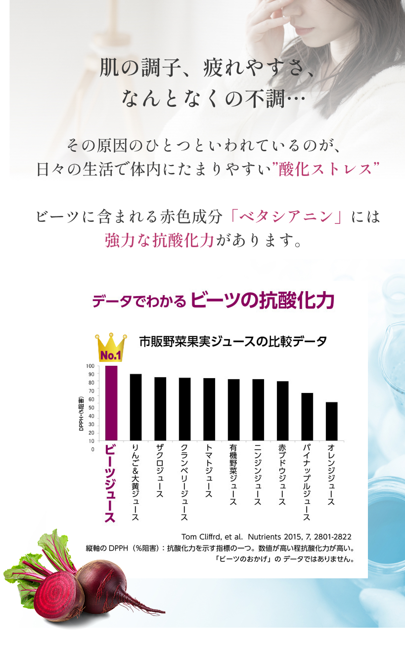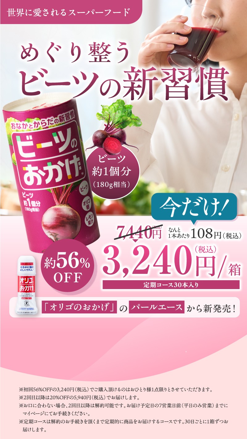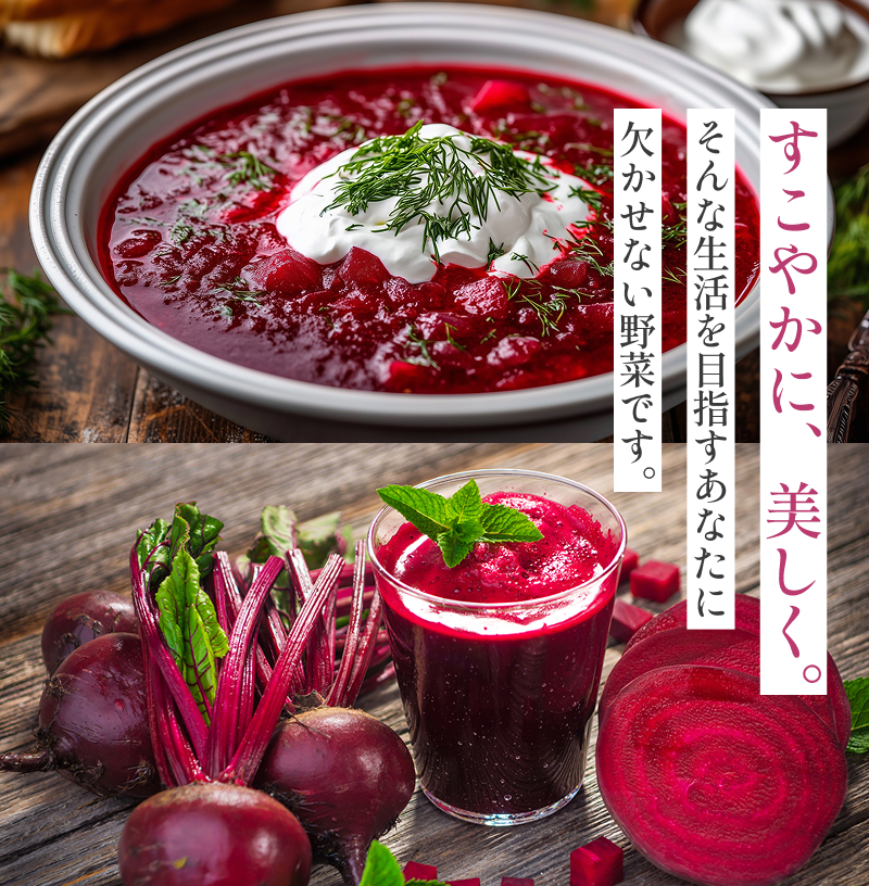 大丈夫ですか?摂取後は、ビーツの色素の影響で、便や尿が赤くなることがあります。