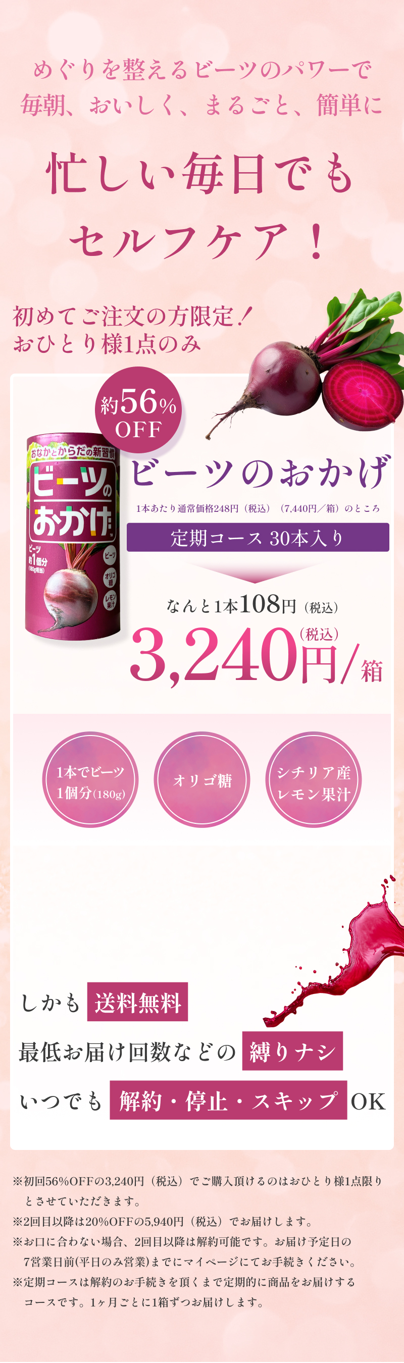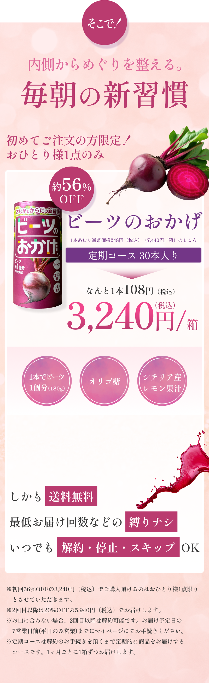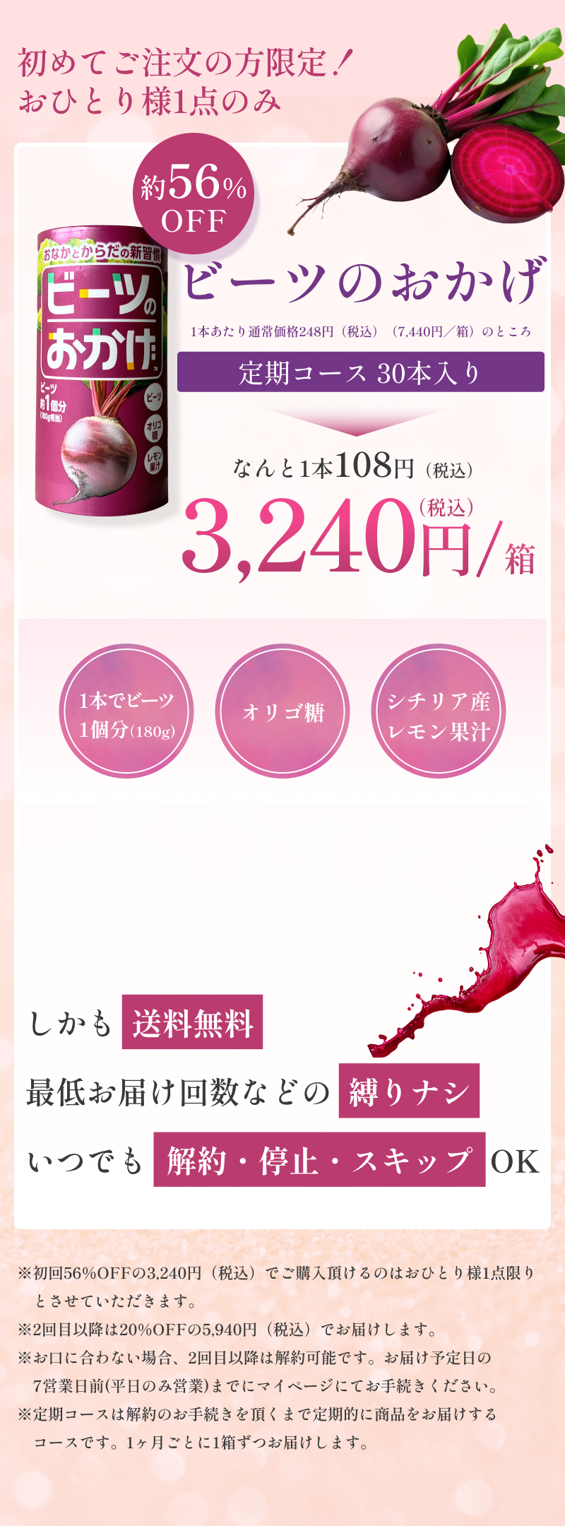 大丈夫ですか?摂取後は、ビーツの色素の影響で、便や尿が赤くなることがあります。
