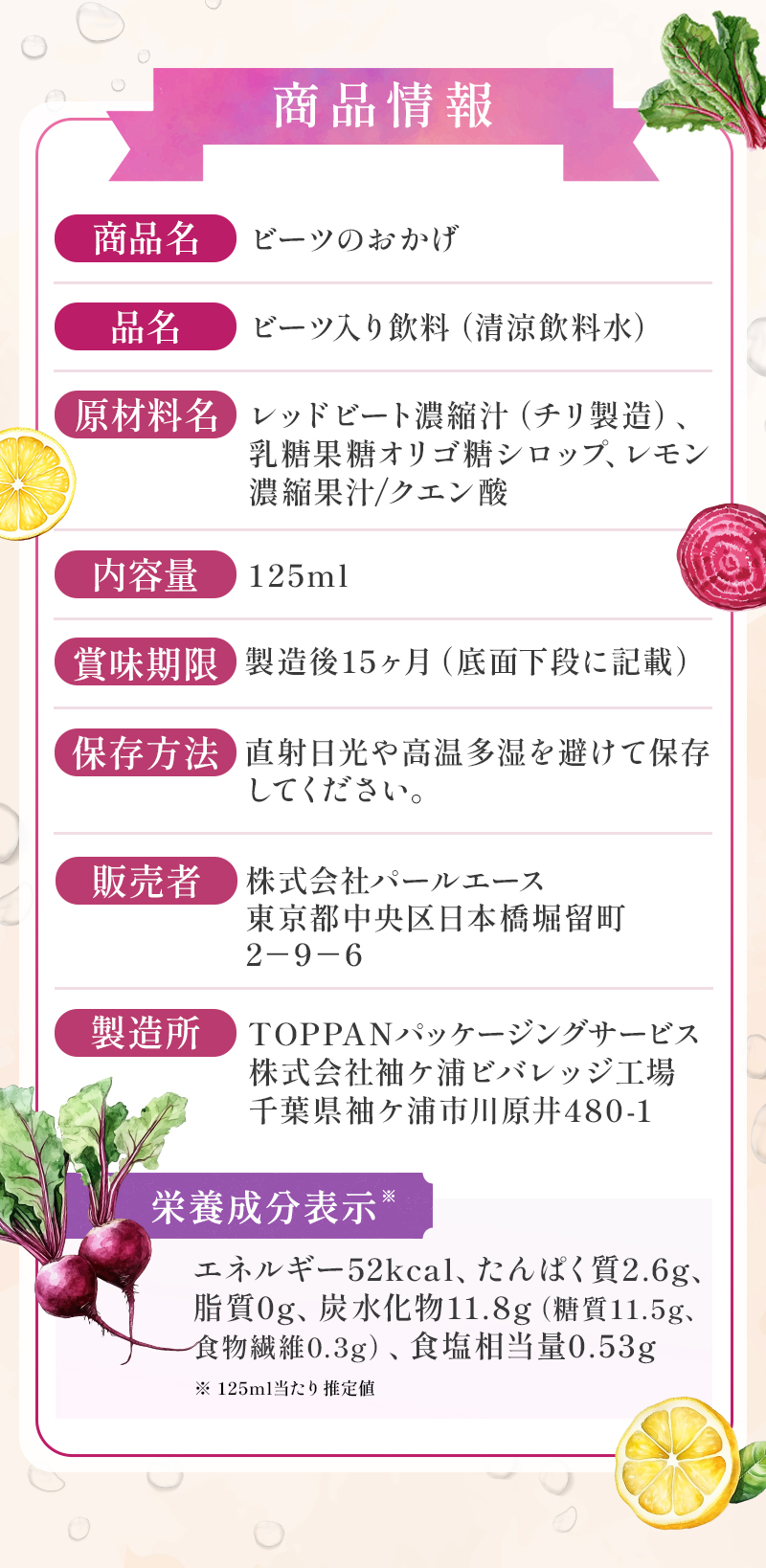 ですか?本製品は清涼飲料水でございますが、妊娠中や授乳期はお体の状態がとてもデリケートな時期です。 安心してお飲みいただくために、念のためかかりつけのお医者様にご相談のうえ、お召し上がりいただくことをおすすめしております。